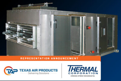 We are excited to announce a significant milestone for both Texas Air Products and Thermal Corporation as we embark on a strategic partnership aimed at delivering enhanced solutions in the HVAC custom air handler industry. Texas Air Products, known for its innovative approach and commitment to quality products and service, has joined forces with Thermal … Continue reading TAP is Proud to Announce That We are Now Representing Thermal Corporation